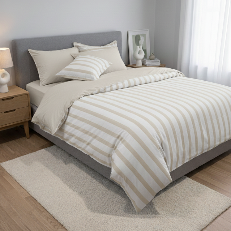 Wide Stripes Percale Plain Bedsheet & Duvet Cover (Set 6 pieces)